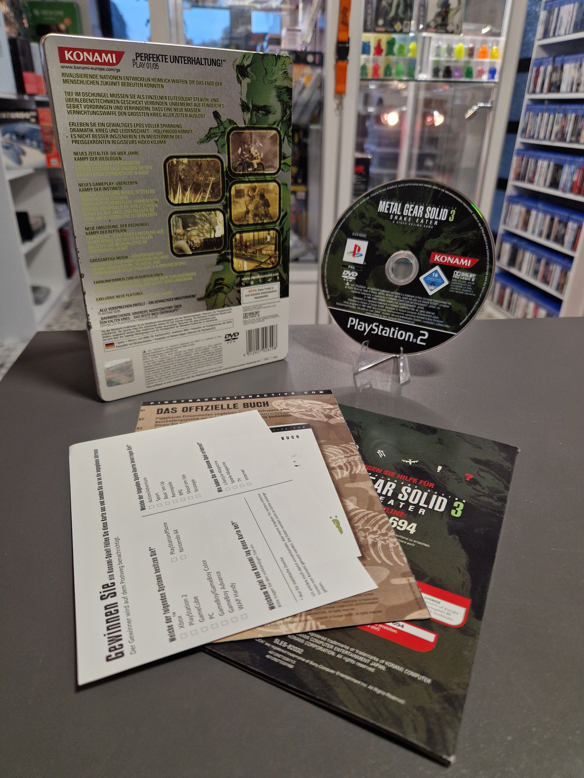 Erleben Sie das packende Agentenabenteuer Metal Gear Solid 3: Snake Eater in der exklusiven Steelbook-Edition für die PlayStation 2. Diese Sammleredition begeistert mit hochwertiger Verpackung und fesselndem Gameplay. Tauchen Sie ein in eine spannende Geschichte während des Kalten Krieges, in der taktisches Vorgehen, Stealth und actionreiche Kämpfe perfekt verschmelzen. Ergänzen Sie Ihre PS2-Sammlung mit diesem Kultklassiker, der durch seine mitreißende Handlung und unvergleichliches Spielerlebnis besticht.