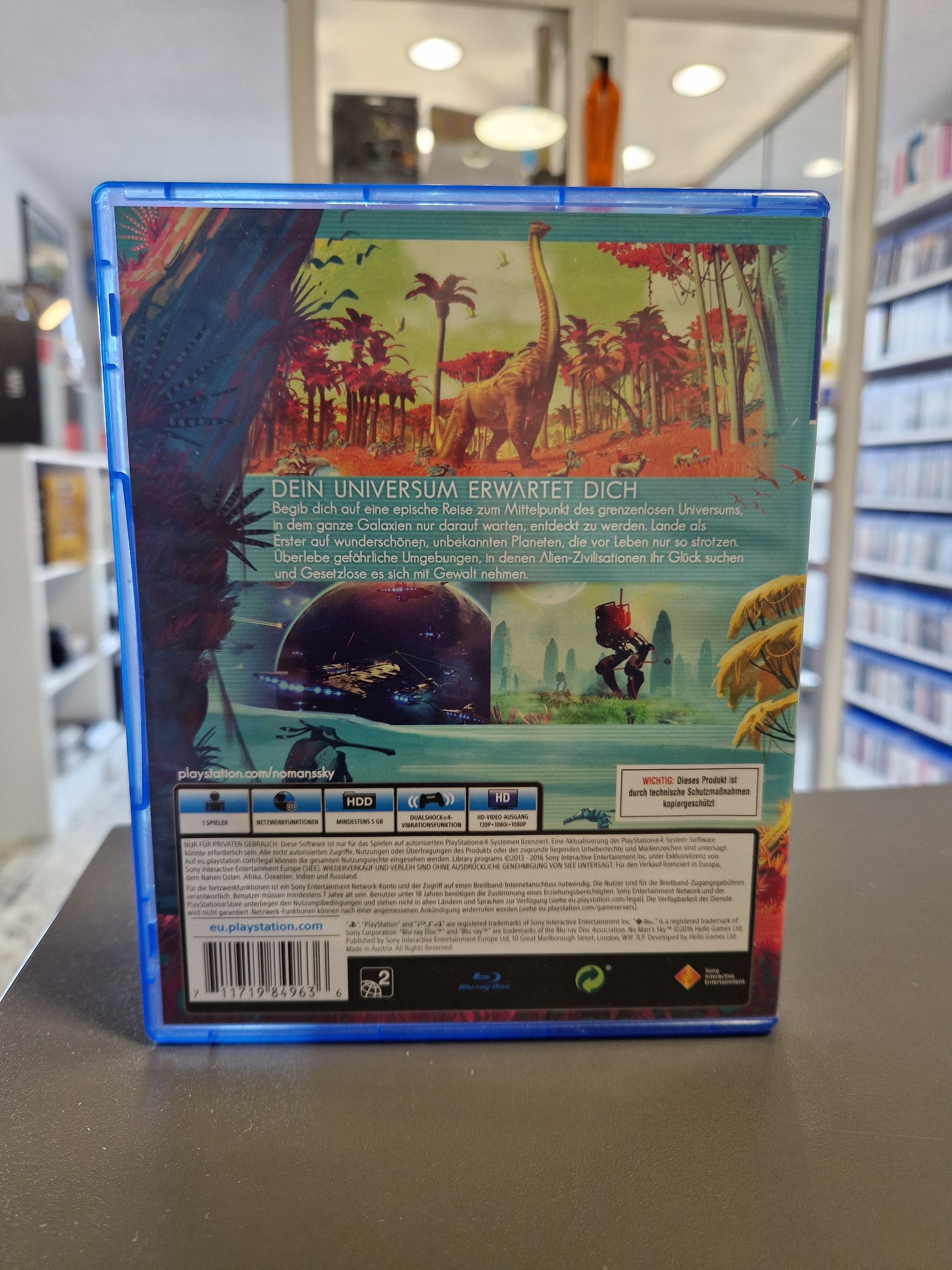 Erkunden Sie das Universum mit No Mans Sky auf der Playstation 4. Tauchen Sie ein in eine unendliche Welt voller Möglichkeiten, während Sie fremde Planeten erkunden, Ressourcen sammeln und Ihr eigenes Raumschiff bauen. Ein Muss für alle Abenteurer und Weltraumliebhaber!